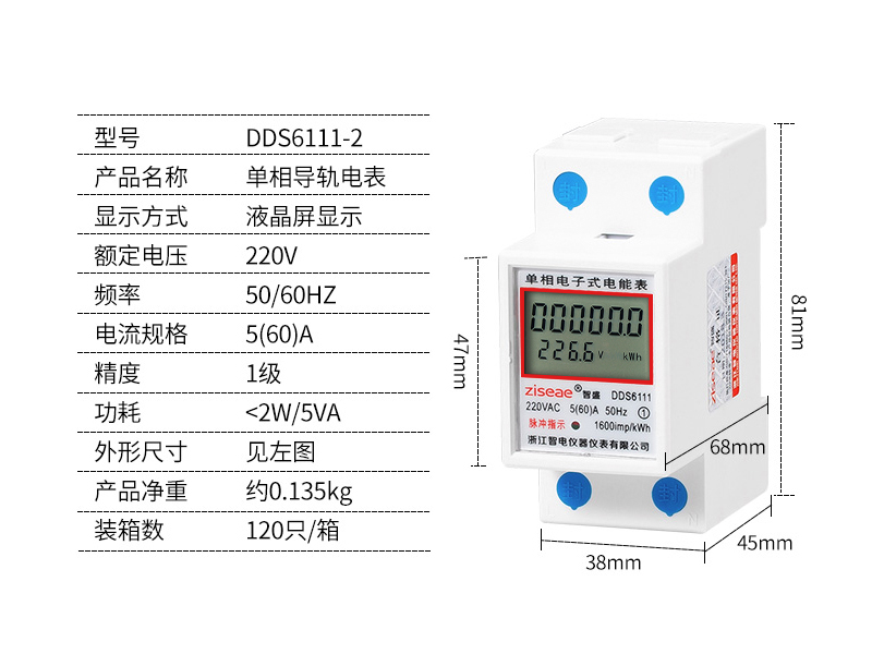 DDS6111型單相導(dǎo)軌式電能表2P(帶背光)
