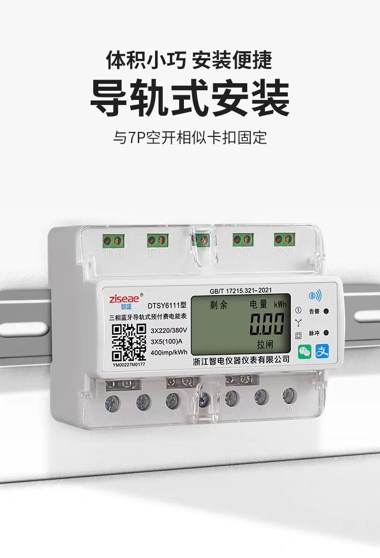三相導軌式藍牙掃碼充值電表