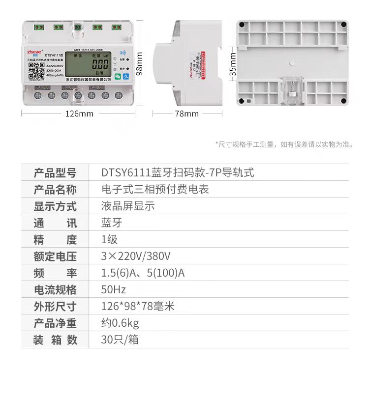 訂購產品: 三相導軌式藍牙掃碼充值電表