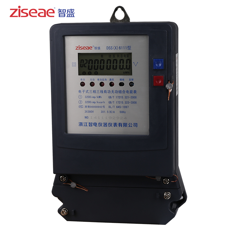 DTS(X)6111、DSS(X)6111型三相電子式有功無功組合電能表(以下簡稱電能表),是為了適應電網改造設計開發的有功、無功組合式電能表。它具有較高的準確度和可行性。產品制造標準符合GB/T17215.321-2008《1級和2級靜止式交流有功電能表》、GB/T17215.323-2008、DL/T614-1997《多功能電能表》、DL/T645-1997《多功能電能表通信規約》等電力行業標準對三相靜止式電能表全部技術要求,是對需要進行無功電量考核的企業、變電站或電廠理想的選擇,亦適合輸配電或配網自動化用表。本產品可供計量參比頻率為50Hz電網中的三相交流有功和無功電能,并能進行正、反向電能計量和紅外及RS485通訊功能。其特點是精度高、可靠性好、寬負荷、低功耗、誤差曲線平直、抗干擾能力強。