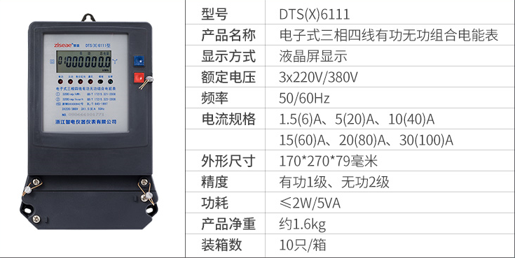 DTS(X)6111三相四線有功無(wú)功組合電表(液晶)