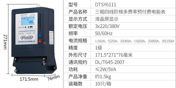 訂購產品: DTSY6111三相四線階梯多費率預付費電表